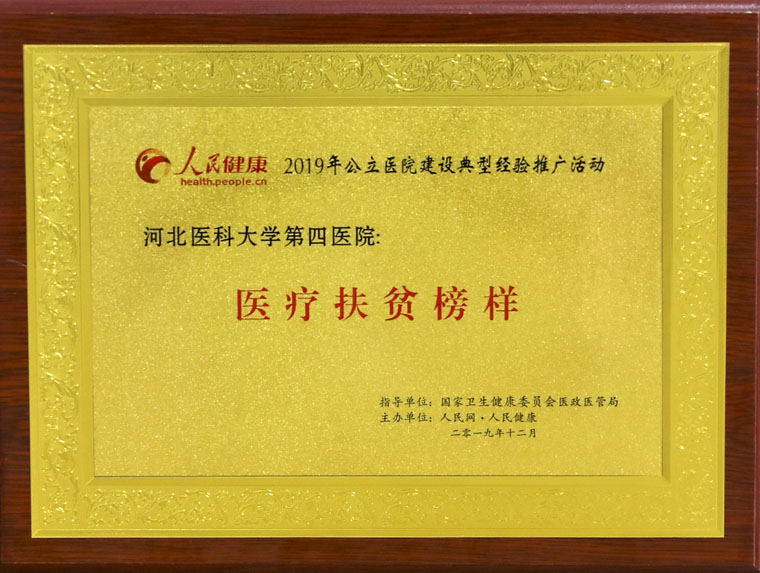 1214日,2019中国医疗机构高质量发展论坛暨公立医院建设经验推广交流大会在北京召开,会议由国家卫生健康委员会医政医管局指导,“人民网·人民健康”主办。会议期间,对经过主办方组织的评审专家评审出的公立医院建设成就典型推广单位和对医院建设具有突出贡献的管理者进行颁奖,我院荣获“医疗扶贫榜样奖”,全国共10家单位获奖,河北省仅我院1家获此殊荣。