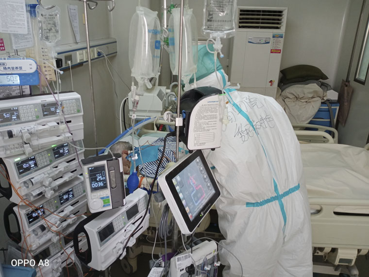 虽然只来到唐山工作了21天,但四院的“魏老师”早已被大家熟知,脏活、累活还有暴露风险大的工作,她都冲在前面。不止如此,像“更换去甲肾”、“给危重症患者拍胸片”、“与ECMO相连的血浆置换”等高难度工作,都需要她来“坐镇”指导。“既然省里来的专家都亲力亲为不怕感染,我们一线的护士们又有什么好怕的”,一位在这里参与救治的护士说道。