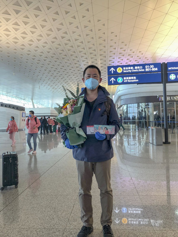 3月18日上午,河北支援湖北医疗队在方舱医院工作的575名队员陆续搭乘专机返冀,我院CT磁共振科技师长、第九批河北支援湖北医疗队队长刘辉随队返程,他们于10点30分左右抵达正定国际机场,他将前往指定地点隔离休养。
