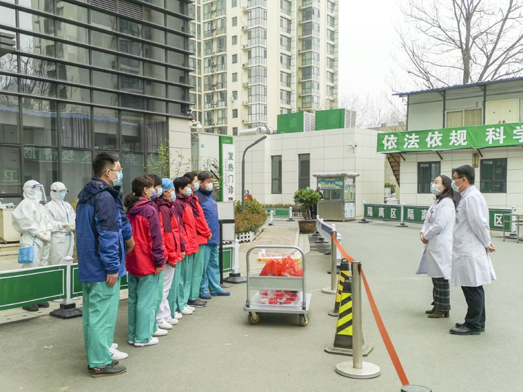 在东院,耿翠芝副院长代表医院对大家临危受命,积极投身抗疫一线,勇于担当、无私奉献的精神给予了充分的肯定,感谢大家为疫情防控作出的努力和贡献,希望大家在做好自身防护的前提下,坚定信心、履职尽责,全力做好发热病人排查工作,扎实落实好各项工作流程和防控措施,圆满完成任务。