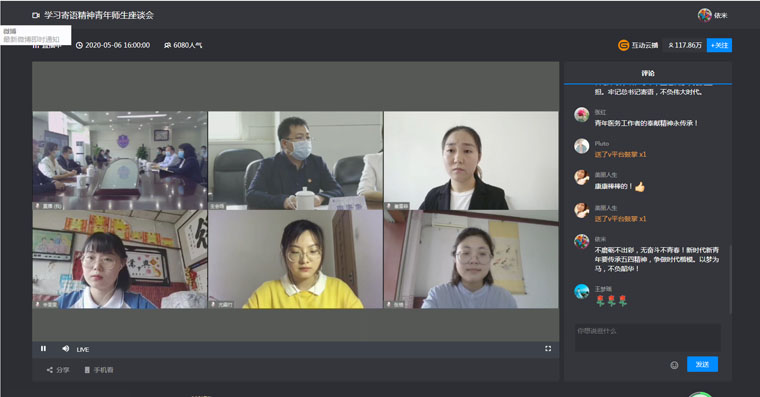 5月6日,学校召开“学习寄语精神,展现青春担当”青年师生座谈会,学习贯彻习近平总书记对新时代青年五四寄语精神。校党委书记翟海魂出席座谈会并讲话。我院重症医学科副护士长申康康作为援鄂青年医护代表在会上做了发言。