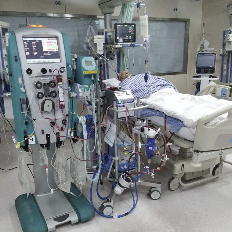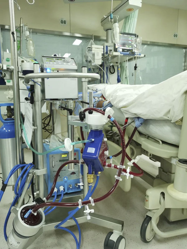 ECMO,体外膜肺氧合,因为新冠肺炎疫情而被更多的普通人所熟知。在重症医学领域,当患者心肺功能严重受损,常规手段及药物不能维持生命的时候,ECMO就该登场了。有了ECMO我们就有了更多的时间去治疗原发病更多的时间去祛除病因更多的机会挽救患者的生命!河北医科大学第四医院重症医学自2015年起坚持高标准、规范实施的原则开展了近20ECMO,在胡振杰主任的带领下ECMO小组不断成长保卫患者生命使命必达!目前科室里两台ECMO同时在运转,其中一台已连续运转100多天,更换膜肺6次,目前患者神志清楚,生命体征平稳,ECMO条件亦在逐渐下调。ECMO,不断刷新着我们对生命和希望的认识。