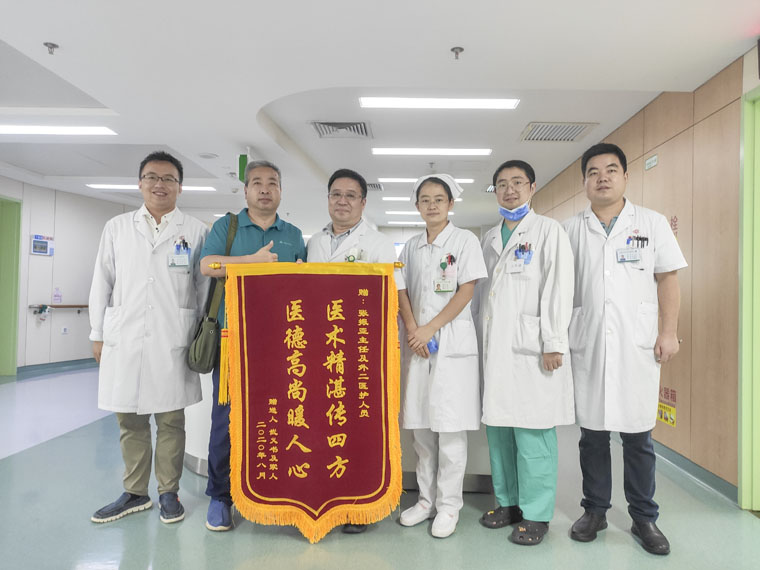 “谢谢您!张主任!谢谢外二科医护人员对我父亲的精心治疗”,8月5日,85岁高龄患者武大爷的3个子女带着锦旗来到外二科医办室向白衣天使们致以诚挚的谢意。