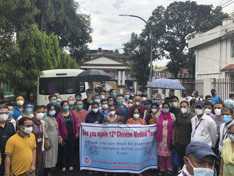 99日一大早,B.P.柯依拉腊纪念肿瘤医院的领导、同事聚集在大巴车前为第12批医疗队举行欢送仪式。医疗队员们与尼泊尔同事依依惜别,合影留念。“一年半的援外工作悄然而过,我收获的不只是辛苦,更多的是看见病人康复后的欣慰。我没有辜负党和国家交给我的任务,通过服务当地的每一个百姓,一点一滴增进着中尼友谊,并为在尼数万中国同胞提供医疗服务,这是非常值得的,我期待着在回归工作岗位后继续乘风破浪,砥砺前行”,倪晓辰副主任欣慰地说道。