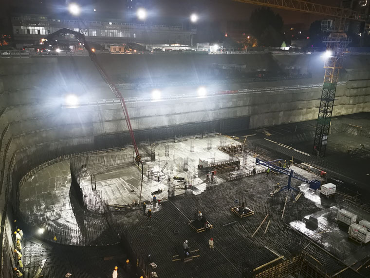 目前,正值工程建设的黄金时期,项目施工现场正是一派热火朝天的景象。各作业段人员鼓足干劲进行施工,掀起了新一轮的建设高潮。基础底板已完成3块区域浇筑。项目建设管理者将继续紧盯目标不放松,全力以赴抓进度,精益求精保质量,筑牢项目建设的根基,全力打造精品工程。