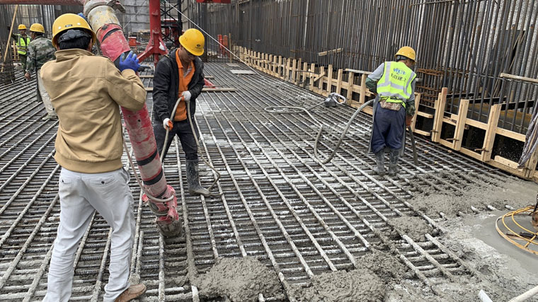 基础混凝土浇筑阶段,我院项目办组织监理单位、施工单位及混凝土搅拌站从原材料储备、运输车辆配备、运输道路规划、浇筑作业人员培训、混凝土测温、试验等多方面因素进行了详细策划部署,确保不间断混凝土浇筑作业的顺利实施,浇筑完成后及时组织各参建单位对浇筑作业过程进行复盘总结,为后续区域基础混凝土浇筑,创造了有利条件。