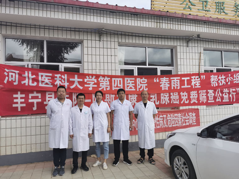 为进一步深化城乡医院对口支援工作,提高贫困县乡镇卫生院医疗服务能力,我院积极响应河北省卫健委“春雨工程”号召,先后由医务处精心协调组织并派出3轮医疗小组深入丰宁满族自治县乡镇卫生院进行帮扶,今年5人帮扶小组自511日起进行为期一年的技术帮扶工作。在开展日常工作同时,他们深入基层,了解到农村群众对肿瘤了解较少,出现异常身体状况不重视,以至于肿瘤发现晚,治疗效果差且花费大。他们积极与丰宁县医院肿瘤科、普外科等相关科室沟通,针对当地肿瘤发病及诊疗特点,提议对恶性肿瘤进行健康宣教及筛查工作,提高广大群众的健康意识,逐步实现肿瘤的早发现、早诊断、早治疗。县医院领导高度重视,给予鼎立支持、组织及配合,经丰宁满族自治县卫生健康局批准同意,指示在全县范围内开展“乳腺癌”早期筛查工作,并在积累一定经验后逐步开展其他癌种筛查。