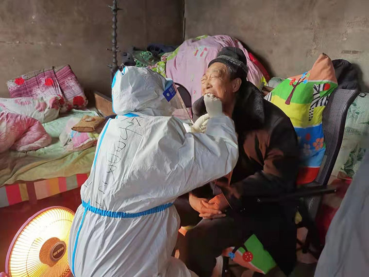 为保证采集工作有序、顺利进行,在执行采集任务前,他们提前与村干部对接,调配物资并合理安排队员分组;执行采集任务时,他们主动承担入户采集这项相对辛苦且风险较高的工作。当他们穿着防护服踏过布满树杈的土路,滑过村口阴凉处冻住的冰面,迈过门口垒的高高的台阶,耐心、细致地完成名单上每一户人员的采集工作后,村民们纷纷表示感谢,有的鞠躬、有的竖起大拇指,还有一个5岁的小姑娘现场为他们演唱了一首《听我说谢谢你》,驱走了疲惫,在他们脸上露出了欣慰的笑容。采集任务结束后,他们还及时与队员们进行沟通,一起想办法提高工作效率。