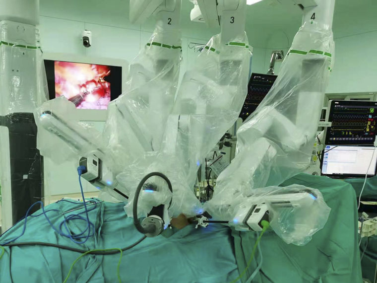 2019年末,河北省第一台达芬奇手术机器人在我院落户,标志着我院外科手术正式进入“机器人微创手术”时代。此后,胸外科刘俊峰主任、何明主任、田子强主任、刘庆熠主任、王洪琰副主任等专家积极探索,在达芬奇机器人辅助下陆续成功开展了纵隔肿瘤切除术、肺癌根治术、食管癌根治术等术式,其开口小、创伤小、解剖层次清晰等优点进一步减少了患者的创伤,提高了生活质量,同时积累了宝贵经验。