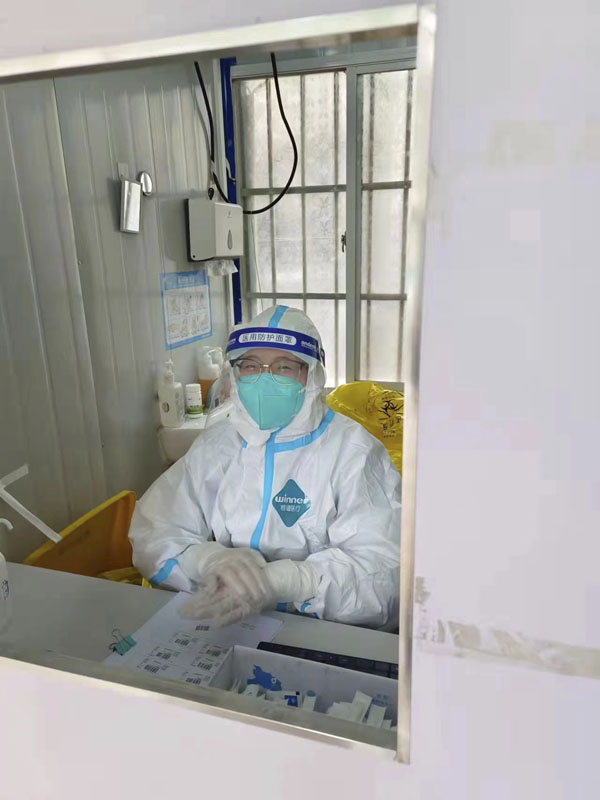 疫情就是命令,责任书写担当。我作为一名共青团员,以担当精神展现青年作为,发扬党有号召、团有行动的光荣传统,不讲条件、不计代价、不怕困难, 全力抗击疫情,主动接受考验。2021年底,护理部需要抽调护士到发热门诊协助工作,我很荣幸地成为门诊核酸采集处的一位大白