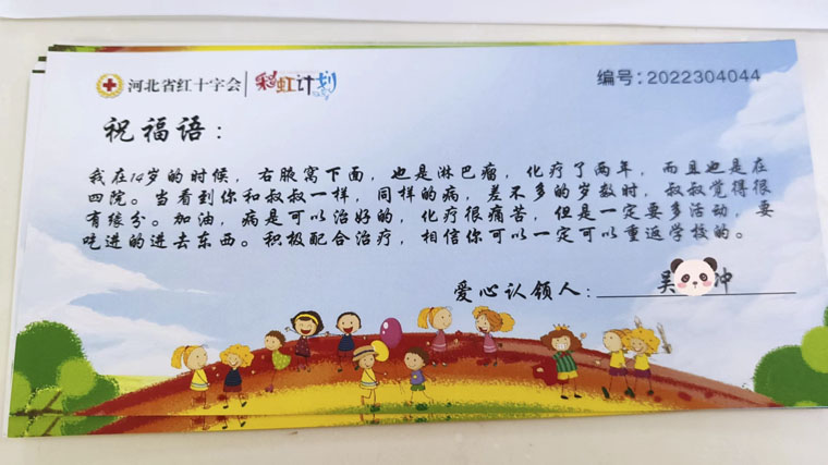 在河北医科大学大学生自发组织、河北医科大学校史文创支持下,我院儿科与在校大学生联动开展线上送祝福活动,并为患儿提前准备了折纸、画笔和儿童图书等礼物,活动由朱秀丽副主任和赵翠芳副护士长主持,刁玉巧主任、江莲教授等医护人员参加。