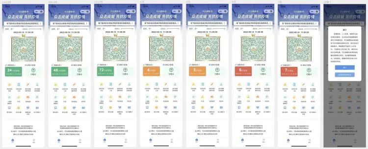 据介绍,此次调整将核酸检测信息和通信大数据行程卡链接并排展示,计时方式由倒计时调整为正计时,自动计算距离上次检测的时间,即提示“核酸检测24小时、48小时、72小时及37天阴性”,同时用不同底色区分,24小时、48小时、72小时底色为绿色,4天、5天底色为橙色,6天、7天底色为红色,更为醒目、直观。检测结果超过7天的将出现弹窗提示,待查询到核酸检测阴性记录后,4小时内自动解除。