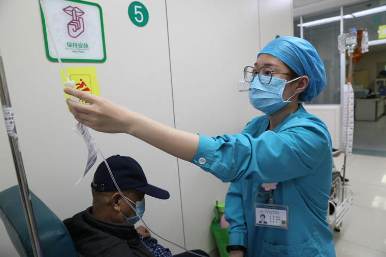 科室定期组织新药物、新技术的学习和培训,人人不落,人人掌握,并且让患者和家属共同参与查对。落实新型抗肿瘤药物“双通道”的管理方法,最大限度为患者提供便利。在新冠疫情的背景下,科室在满足患者新型抗肿瘤药物输注的同时,按照院感要求第一时间调整输液区的布局,科学做好防疫。
