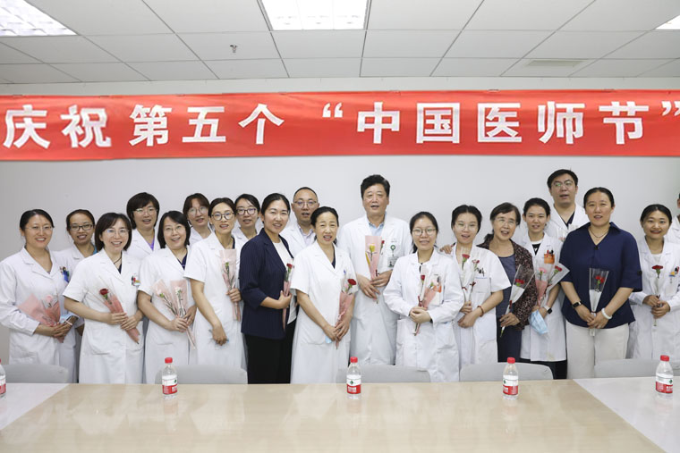 在第五届中国医师节来临之际,8月19日,受中国医师协会委托,河北省卫生健康委医政处赵慎四级调研员、河北省医师协会邢欣秘书长一行5人代表省卫健委医政处、省医师协会来我院慰问一线医务人员,刘运江副院长带领院办室、医务处、宣传部等相关部门负责人陪同。
