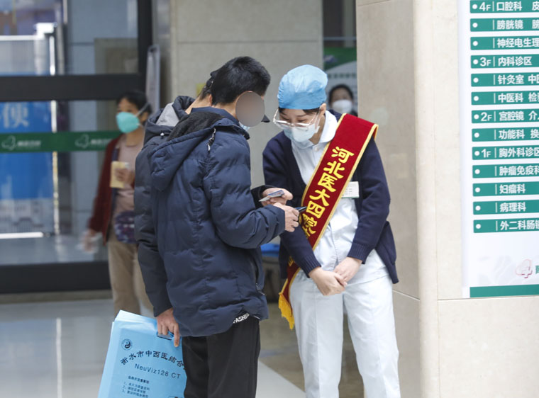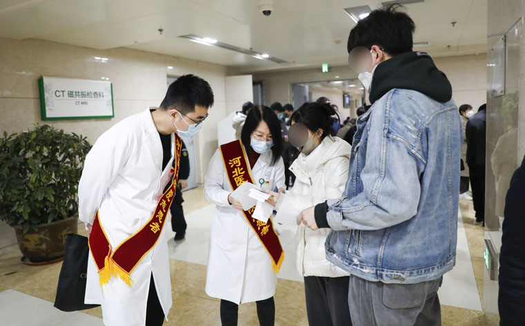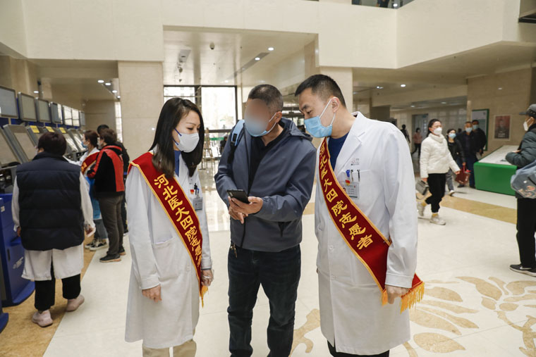 志愿者们一早就开始了有条不紊的服务工作,他们分布到门诊大厅入口处、自助挂号打印处、门诊收费处等工作点位,开展导医导诊、就医咨询、秩序维护等志愿服务活动。