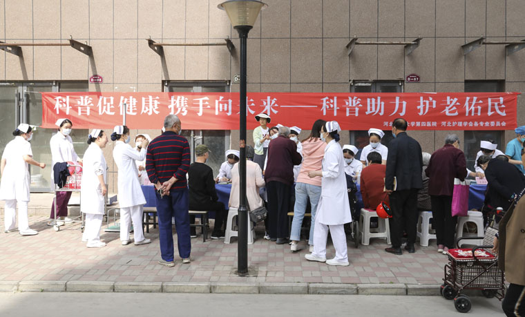 为纪念第112个国际护士节,积极响应2023年中华护理学会、河北省护理学会“护理科普活动周”活动号召,5月11日,我院护理部在本部和东院区组织各专业委员会近40位护理专家,走进长安区建和园小区、高新区想象国际小区举行“科普促健康 携手向未来——科普助力 护老佑民”健康咨询义诊活动。