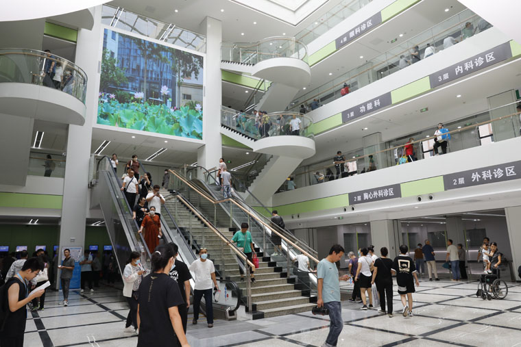 门诊楼布局坚持“以人为本”的原则,从改善患者和医务人员实际需求出发,科学规划、合理分区、充分利用、因地制宜,诊区分为10余个区域,包括1层的儿科、妇瘤科,2层的外科诊区、胸心外科诊区、妇产科诊区、妇产超声科,3层的内科诊区、中医康复诊区、检验科、功能科,4层的眼科诊区、皮肤科诊区、口腔科诊区、耳鼻喉诊区、病理科等,旨在进一步方便患者就医,提供更为全面、周到、专业的诊疗服务。此外,包括水电、暖通、消防、智能化等配套设施更加完善。