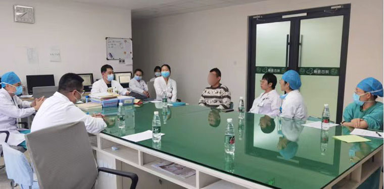 在转科后的次日中午,孕妇病情急转直下,突发大咯血,胸背部疼痛明显,不能平卧,1.5小时咯血量约800ml。产科史丽主任医师在医务处李杰处长的帮助下,紧急组织全院急会诊,胸外科何明主任医师、麻醉科刘华琴主任医师、ICU武新慧主任医师、呼吸内科耿楠副主任医师、急诊科邢冬副主任医师、介入科郝晓光主治医师等迅速到位,经过谨慎周密的分析讨论,最终决定先行全身麻醉下介入手术,如术中出现手术困难或窒息等情况,则行紧急开胸探查。所有前来会诊的医生中午都没有吃饭休息,史丽主任医师、何明主任医师、刘华琴主任医师共同向家属交代病情,家属热泪盈眶,“谢谢四院专家们的重视,我们百分百信任医院、信任医生”。