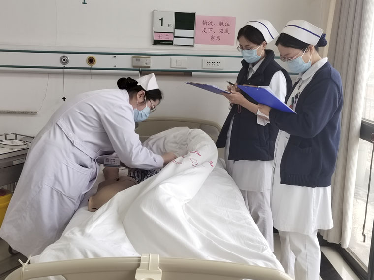 此前,为帮助学生强化护理操作技能,提升岗位胜任力,历时4个月,护理教学办公室联合护理部,组织50余位优秀临床护理教师为21级103名护理专业实习生完成8项基础护理操作的培训,促进理论与临床实践有效结合,并于11月26-27日,在两院区分别进行了技能操作比赛。