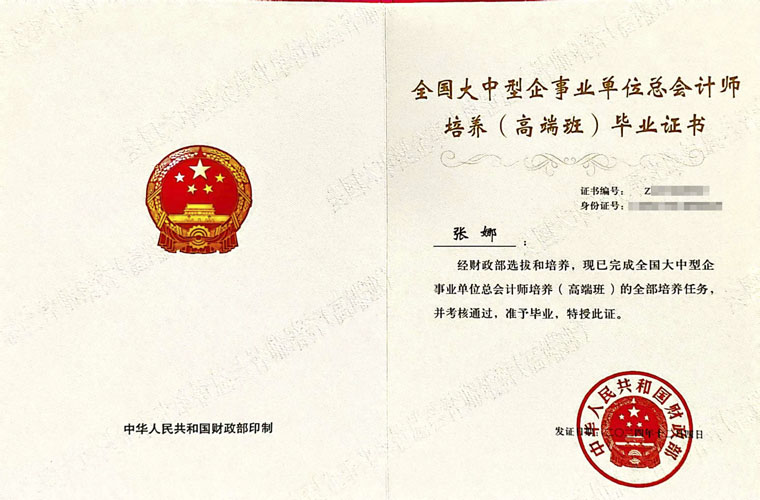 优秀!我院财务处张娜获得财政部全国大中型企事业单位总会计师培养(高端班)毕业证书