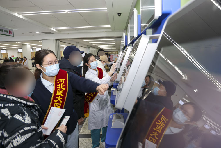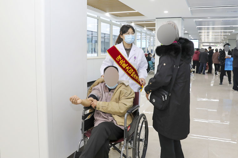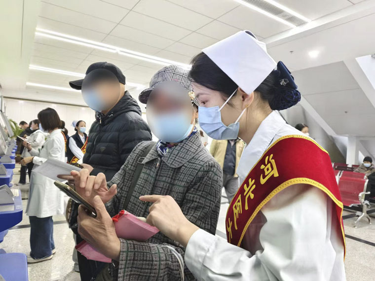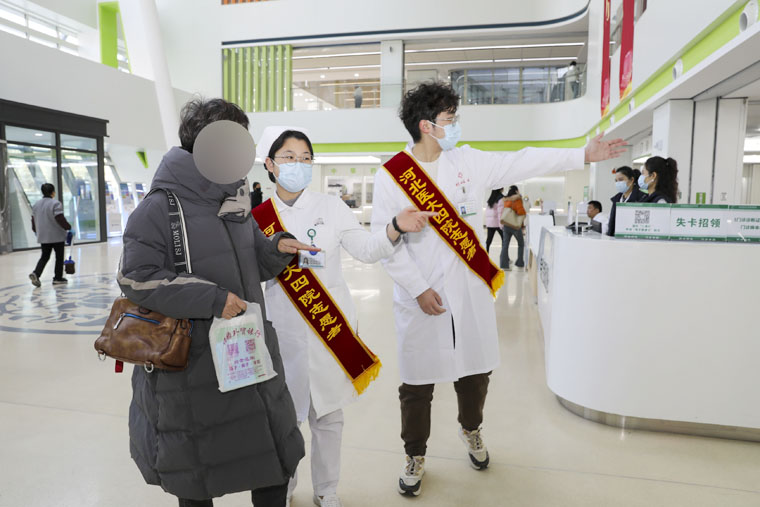 清晨,当第一缕阳光洒进医院时,志愿者们早已各就各位。他们中,有朝气蓬勃的医学生,也有经验丰富的医护人员,分别值守在门诊大厅入口处、自助挂号打印处、门诊收费处等关键点位。面对前来就诊的各类患者,志愿者们主动上前询问需求,从指引挂号和缴费窗口,到告知科室分布、就诊流程,耐心解答、无微不至。针对老年患者对智能终端不熟悉、操作不熟练等情况,志愿者一对一陪伴完成,“这些年轻人手把手帮助我操作,很暖心”。遇到行动不便的患者,志愿者主动帮忙联系轮椅,推送患者前往检查室,确保顺利就医。大家的暖心服务,切实提高了患者的就诊效率和就医体验。