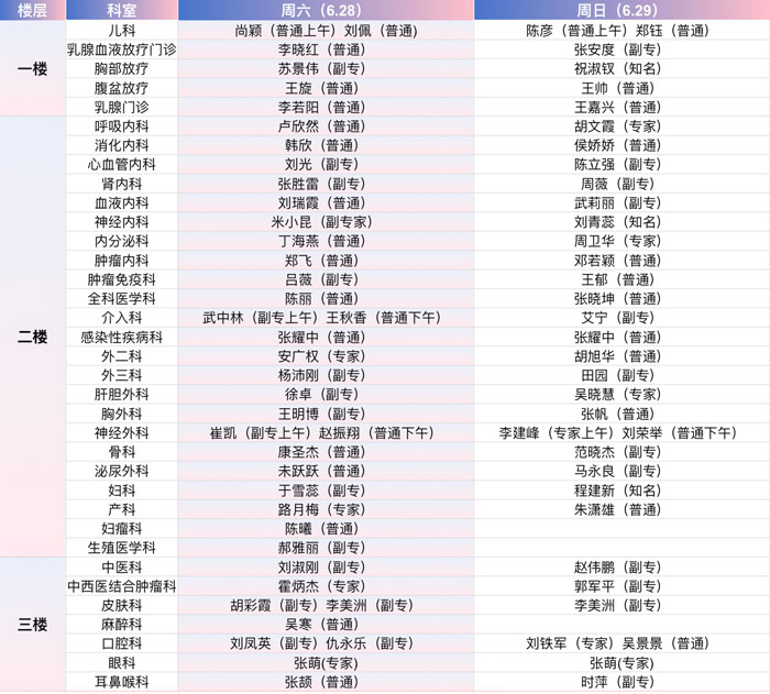 本周末出诊表,请看这里→