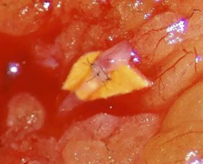 周涛、尚文博在高倍显微镜下行淋巴管-静脉吻合术