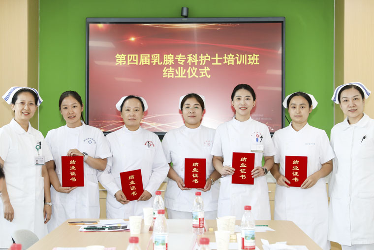 近日,由河北省临床肿瘤学会主办、河北省乳腺疾病诊治中心(我院乳腺中心)承办的第四届“乳腺专科护士培训班”结业仪式在东院区举行。来自衡水、保定、石家庄等地的10名护理骨干经过两周系统培训,全部通过考核并获颁结业证书,其中1名学员获评“优秀学员”,将为全省乳腺疾病护理服务注入更多专业力量。