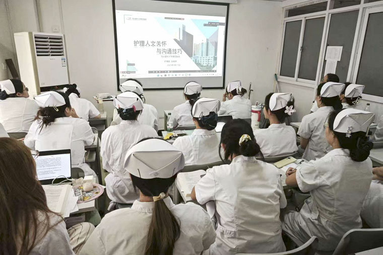 名誉班主任赵晓燕以《护理人文关怀与沟通技巧》为题开展专题讲座。她从“提灯女神”南丁格尔的故事切入,系统梳理了护理人文关怀的起源、发展脉络、时代启示及政策背景。她表示,护理人文关怀的核心不仅是专业技术,更是对患者心理需求的精准洞察与温暖回应,并从非语言沟通、语言表达、倾听技巧、同理共情及情绪管理等维度,传授了临床沟通策略,鼓励同学们将人文关怀融入实践,用专业与温度守护生命。