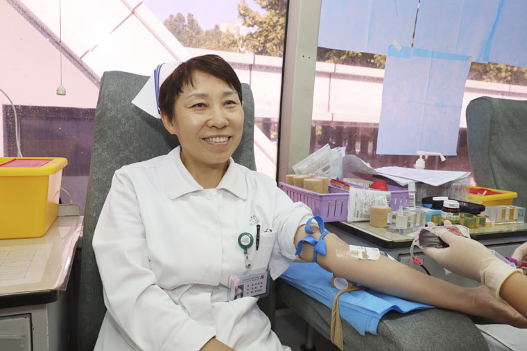 上午8时,献血登记点已经排起了等候献血的队伍。临床医生、护理骨干、行政后勤、规培学员、实习同学等在工作人员和志愿者的引导下,有序完成信息登记、健康征询、体格检查、血液初筛等环节。这其中既有多次参与献血的“老将”,也有首次献血的“新兵”。作为奋战在救死扶伤一线的医护人员,大家深知血液在临床救治中的重要性和紧迫性,纷纷表示希望用热血为患者搭起生命桥梁。