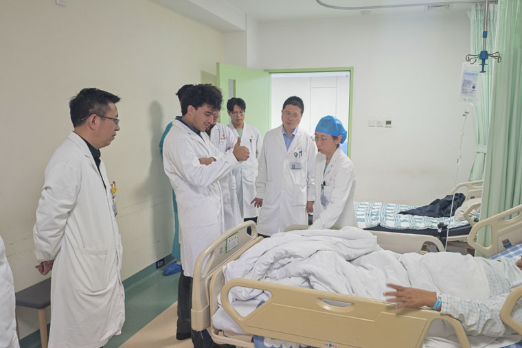 在欢迎仪式上,彭利副院长对来访的医生们表示热烈欢迎,并介绍了我院的发展历程、学科建设成果及特色学科优势。他指出,医院始终积极投身“一带一路”医疗卫生交流,致力于构建开放互利的国际医学合作网络,为促进全球卫生健康事业的发展不懈努力。期待以此次交流为契机,深化两地多学科合作,分享临床科研实践经验,让优质医疗技术惠及更多患者。