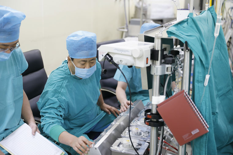 手术第二阶段由心脏血管外科冯光兴主任主刀,在术中可见下腔静脉异常增粗,腔内可触及“条状”肿物。根据既往经验,切除子宫双附件后行开胸手术,因肿物呈条索状,牵拉一旦脱落,就是致命性肺栓塞,手术台上抢救都来不及。为最大化降低风险,冯光兴不采用开胸手术,而是从下半躯体血液回流主干下腔静脉取出肿物,术中食道超声进行严密监测。由于下腔静脉为人身体最大静脉,腹腔所有脏器及下肢血液均通过此静脉回流,要是没有相应措施,手术切开血管瞬间患者就会休克死亡。为保证安全,体外循环小组组长马洪亮带领团队装机护驾,保证术中出血及时回输人体。10余分钟后,食道超声提示,心房内肿瘤已被完整取出,手术获得成功。随后,患者转回心脏外科监护室,术后第一天就顺利脱离呼吸机,第二天转回普通病房,可自行下地活动。