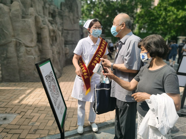 6月29日,第25党支部与第41党支部在医院本部联合开展暖心服务主题党日活动。在前庭广场休息区、急诊与门诊候诊区,支部成员为来院家属和患者讲解就诊流程及自助机使用方法、指引科室位置、疏导有序就诊、指导大家规范佩戴口罩、帮助行动不便及年老体弱者,并准备了矿泉水及口罩等便民物品,耐心细致解答相关问题,助力提升患者就医感受。