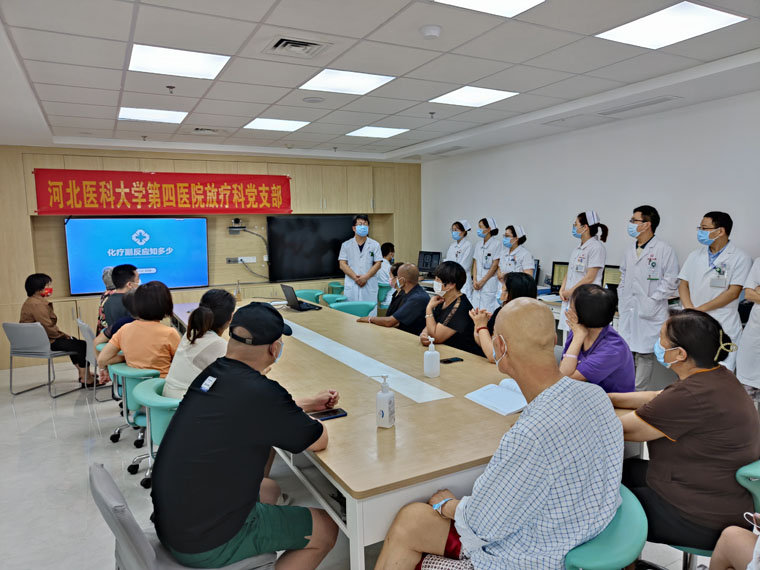 第20党支部全体党员结合自身专业特点,为肿瘤放疗科住院患者举办了“化疗副反应知多少”为主题的患教会。