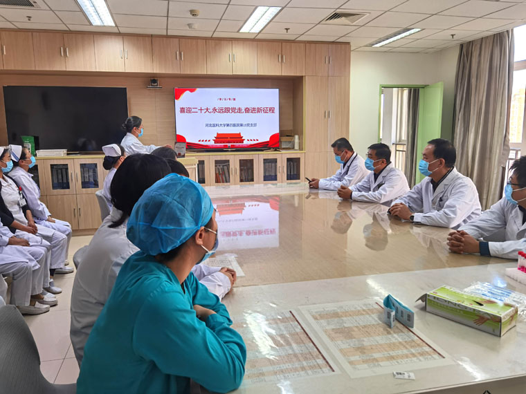 支部书记迟子锋指出,要结合王军主任的党课,认真学习放疗科历史,深刻领悟科室老一辈放疗人拼搏付出的精神。希望大家以更加坚定的理想信仰、更为崇高的使命追求迎接党的二十大胜利召开。