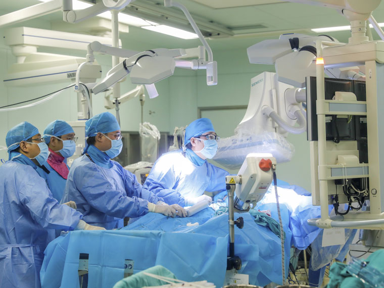 随着医学的快速发展,外科手术的微创化是必然趋势,创伤小、痛苦小、恢复快,可以达到传统手术同样的效果。在我院党委的正确领导下,近年来,经院内多学科团结协作,心外科手术微创化不断走向成熟,目前胸腔镜下心脏瓣膜置换、小切口冠脉搭桥、微创冠脉搭桥联合PCI治疗冠心病、小切口下全主动脉弓替换等微创手术均已成为科室主流手术,经导管主动脉瓣植入术(TAVR)的开展必将助力手术微创化的进一步发展,使更多患者受益。