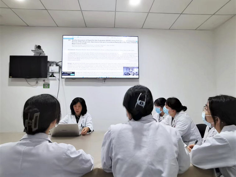 癌检中心始终秉承“以患者为中心”的工作理念,锐意进取、守正创新,充分发挥细胞的利用价值,通过病变的细胞来指导疾病临床治疗和临床分期。对于晚期无法获取组织标本的病人,不仅能通过细胞病理学检查定性,还能确定肿瘤来源以此指导临床治疗,切实解决实际问题,为医院高质量发展贡献能量。