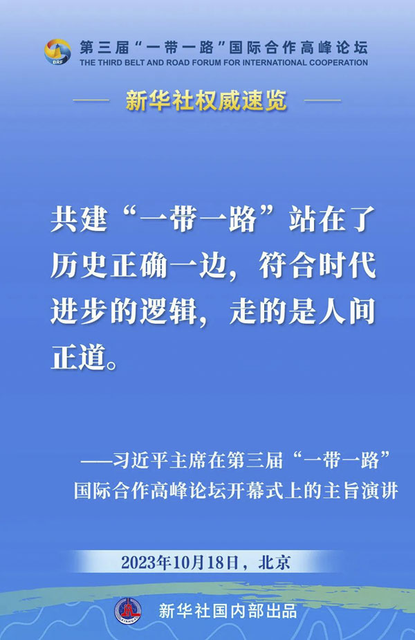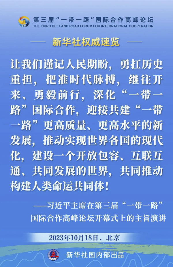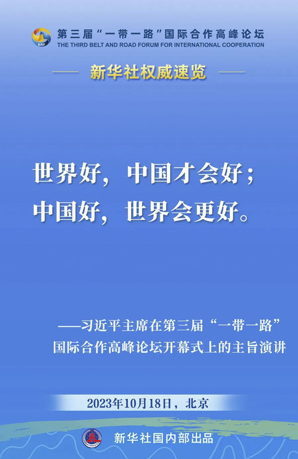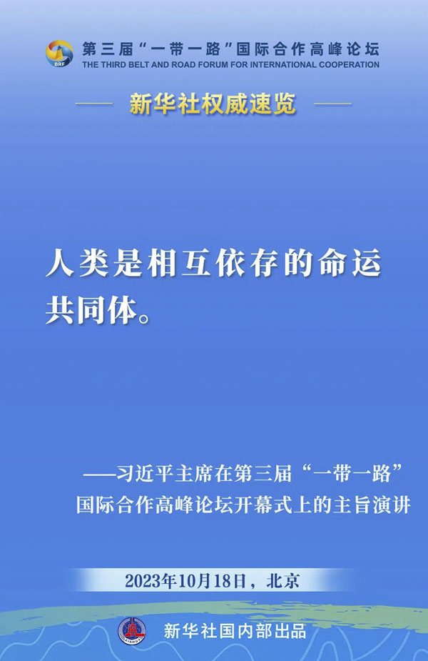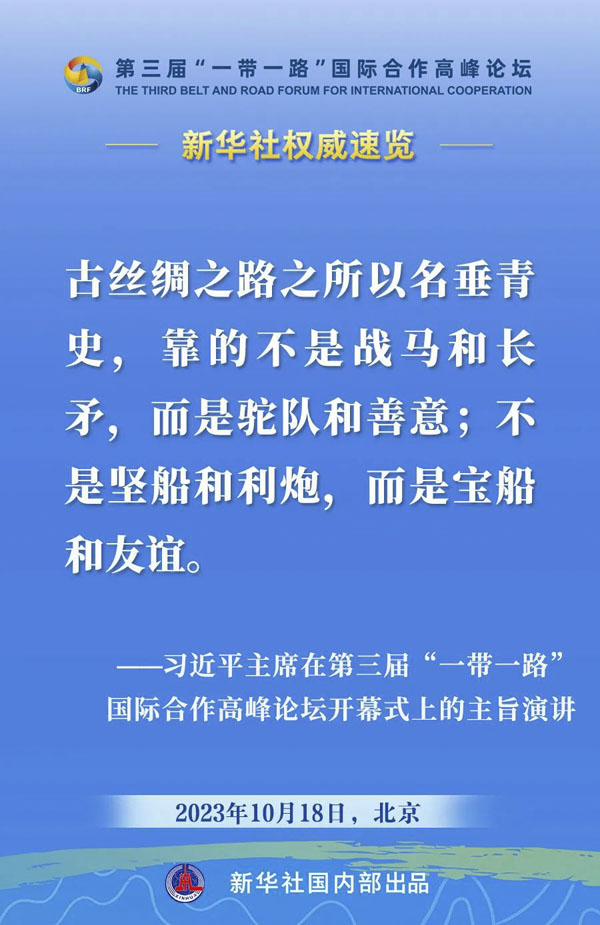 10月18日,国家主席习近平在第三届“一带一路”国际合作高峰论坛开幕式上发表主旨演讲。一起来看金句。