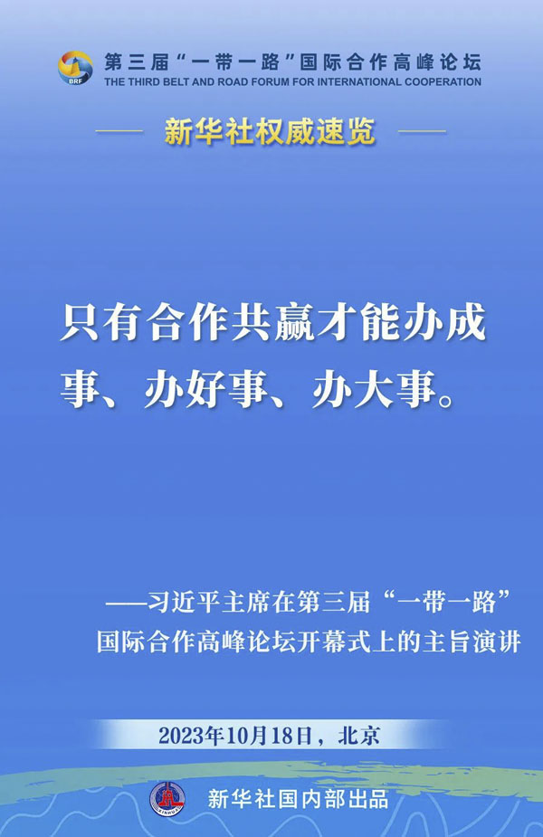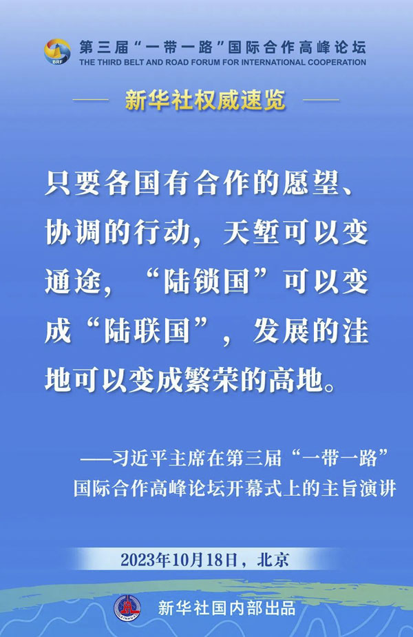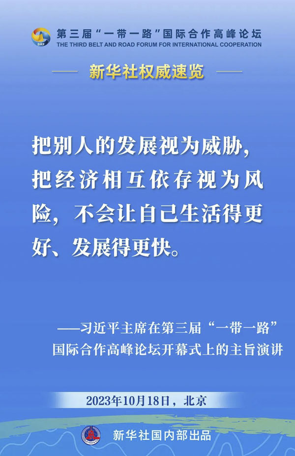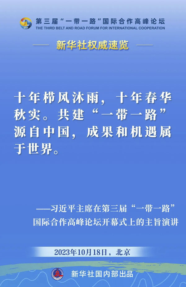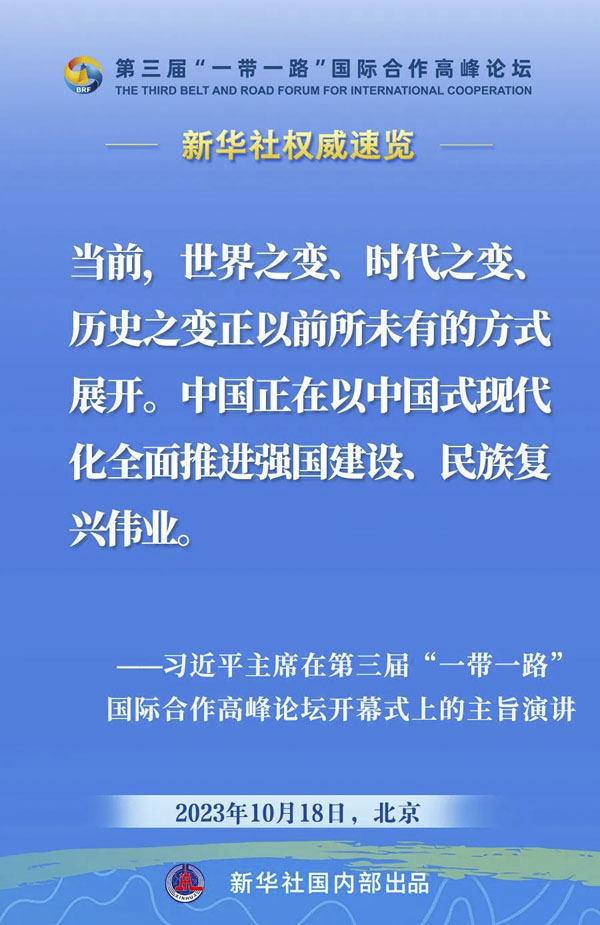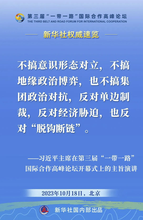 10月18日,国家主席习近平在第三届“一带一路”国际合作高峰论坛开幕式上发表主旨演讲。一起来看金句。