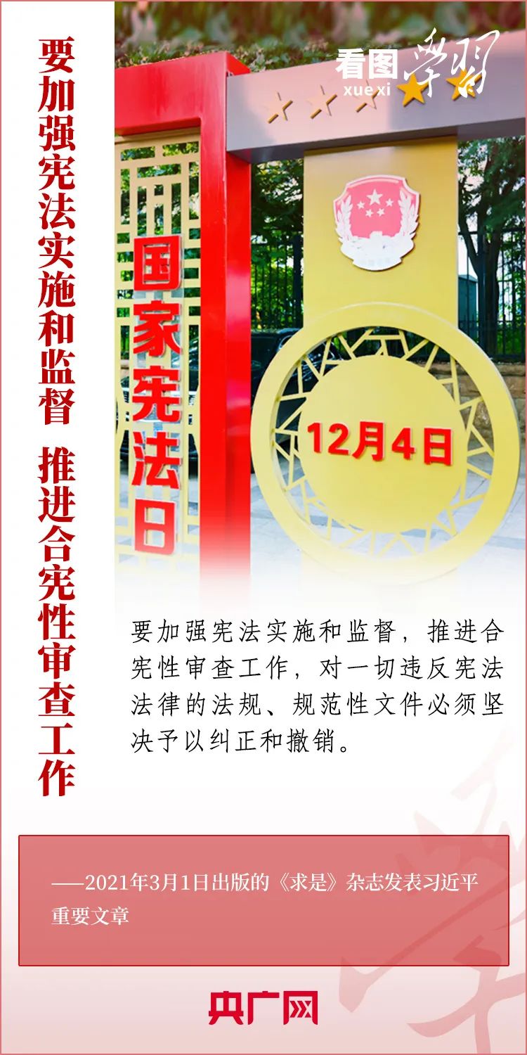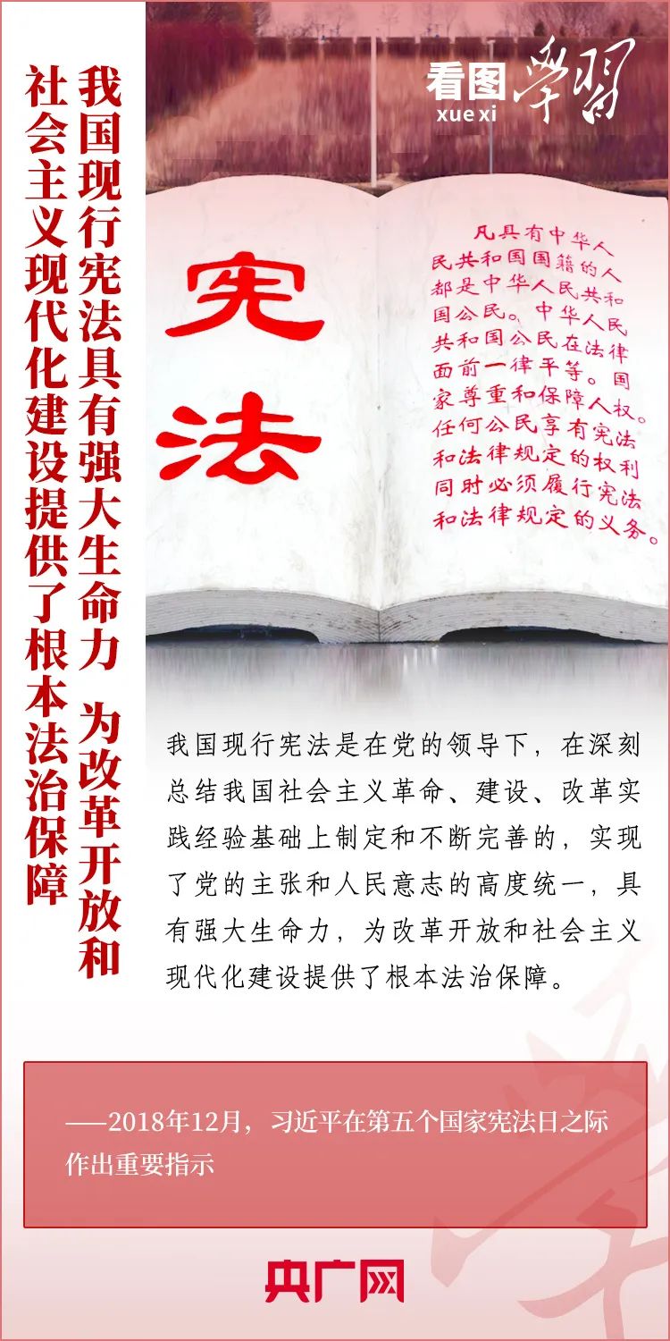 宪法是国家的根本法,是党和人民意志的集中体现。尊崇宪法、学习宪法、遵守宪法、维护宪法、运用宪法,是每个公民的义务。今天是第十个国家宪法日,央广网《看图学习》栏目为您梳理习近平总书记关于宪法的重要论述。一起来学习!